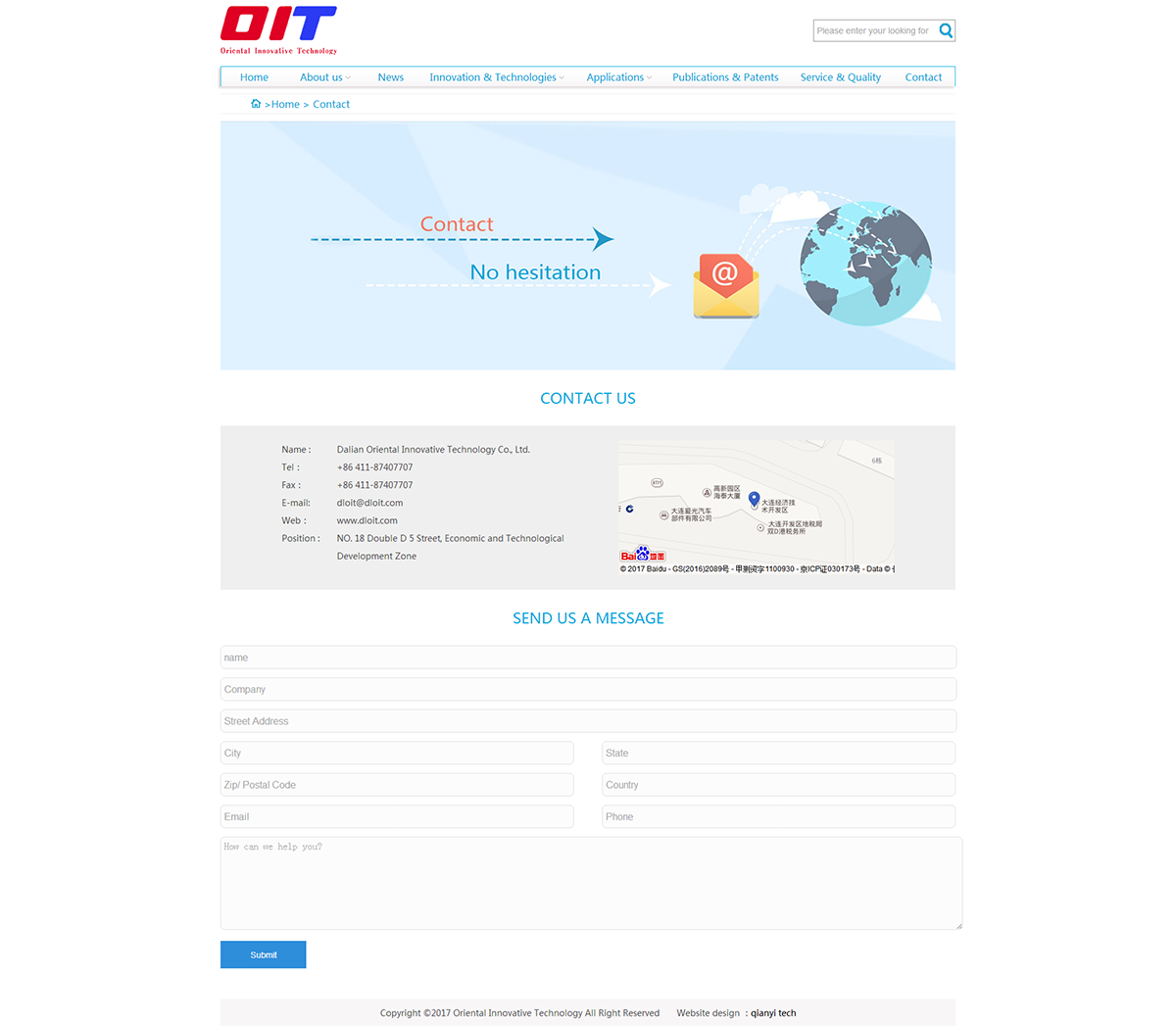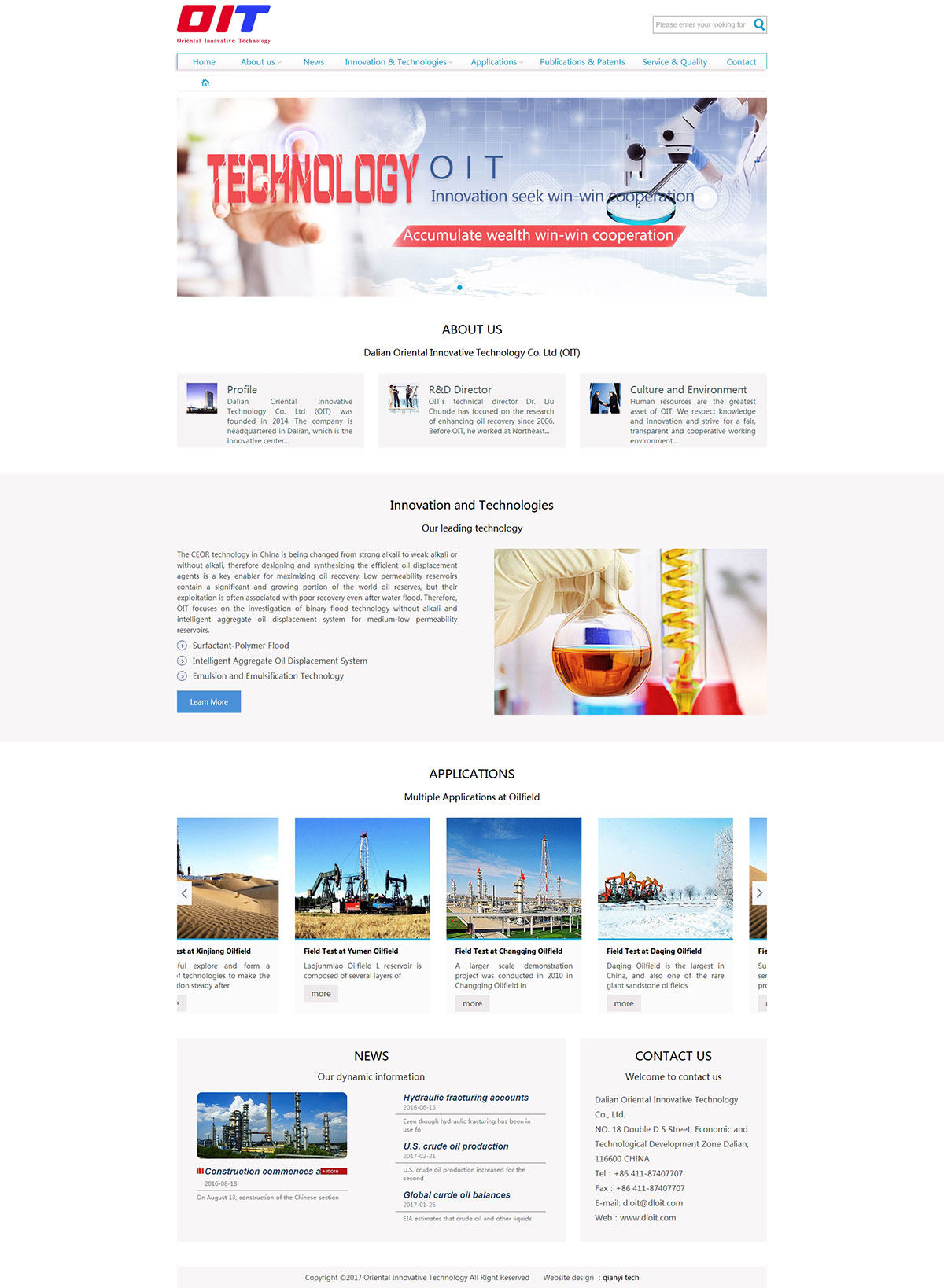 alian Oriental Innovative Technology Co. Ltd (OIT) was founded in 2014. The company is headquartered in Dalian, which is the innovative center of North East of China. OIT also has an office in Beijing.