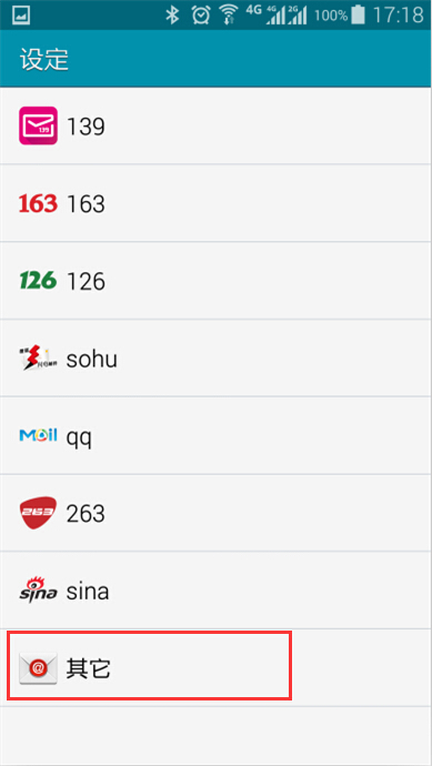 1.打開(kāi)安卓手機(jī)的應(yīng)用程序,選擇 郵件 ,進(jìn)入至郵箱設(shè)置頁(yè)面。在選擇郵件提供商處單擊 其他 ,如圖: