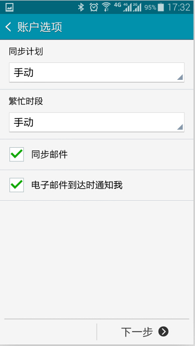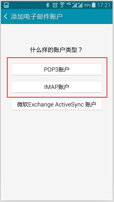 此處以三星(系統(tǒng)版本4.4.2)為例,介紹下使用安卓系統(tǒng)自帶的客戶(hù)端如何設(shè)置 POP / IMAP 協(xié)議方式方法。