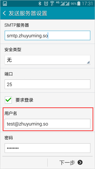 填寫(xiě) SMTP 用戶(hù)名,請(qǐng)完整填寫(xiě) email 地址
