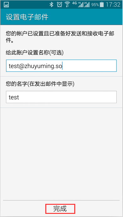 4.填寫(xiě)姓名后單擊 結(jié)束設(shè)置 ,完成整個(gè)安卓手機(jī)客戶(hù)端設(shè)置。