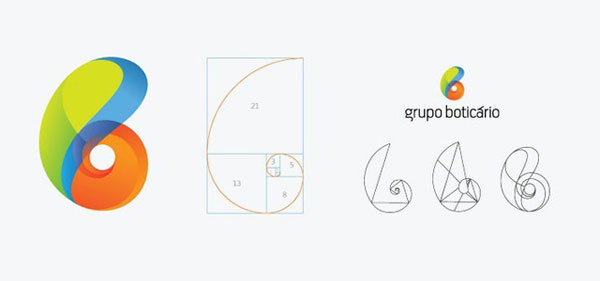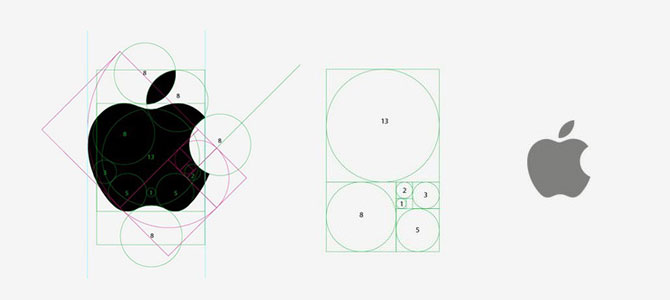 從上述的例圖中,拿蘋果的logo來分析,在蘋果logo輔助線分解中,我們可以看出蘋果logo的設(shè)計正是采用半徑1,1,2,3,5,8,13的圓切割而成,也就是上述我們說的斐波那契數(shù)列。