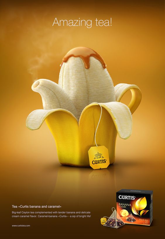 這個廣告由柯蒂斯茶選擇用視覺語言來展示他們的茶的香味和口感,而不是直接告訴顧客。 他們完全可以簡單地在頁面上添加一些文字說“這個茶擁有非常非常強烈的橙子香味”,但是他們選擇通過將橙子變成茶壺的形狀來傳遞以出他們的茶擁有非常強烈的橙子香味。