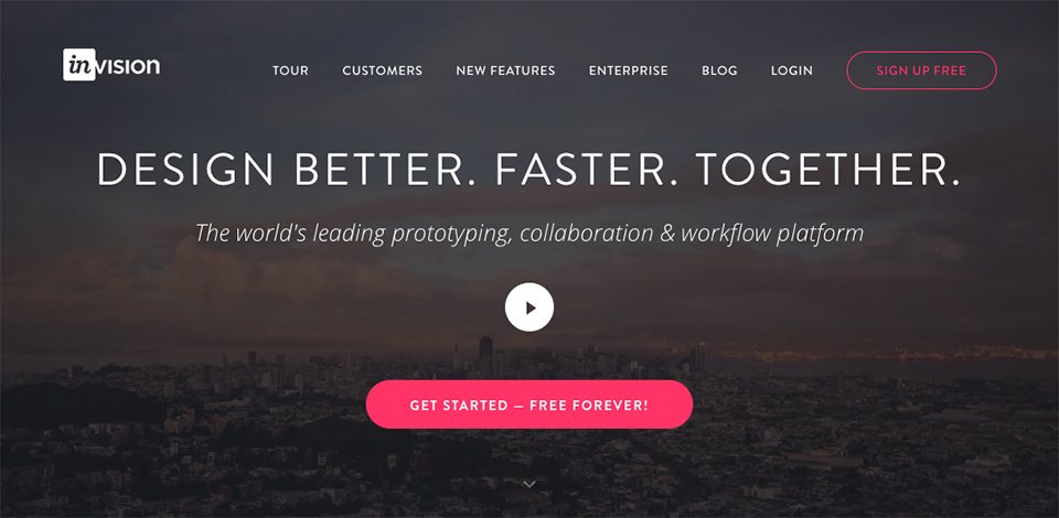 Invision的按鈕使用了品牌色:紅色。