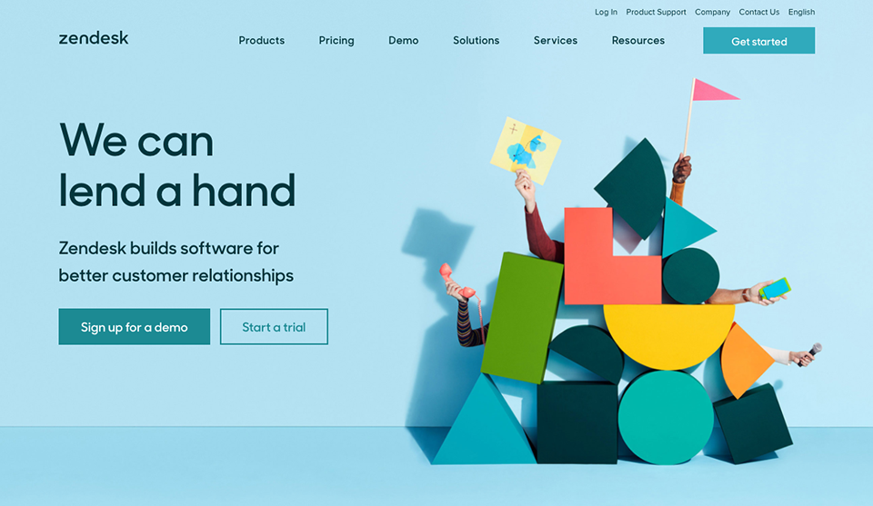 Zendesk用形象的概念圖來輔助傳達(dá)產(chǎn)品的價值主張——We can lend a hand。