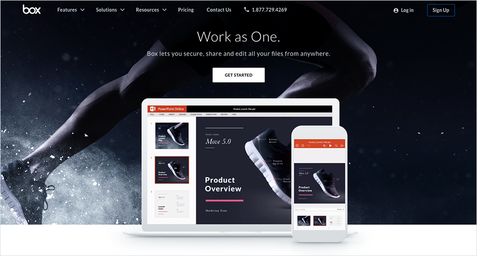 云存儲應(yīng)用Box用產(chǎn)品界面和照片混搭的形式來表現(xiàn)“Work as One”的產(chǎn)品理念: