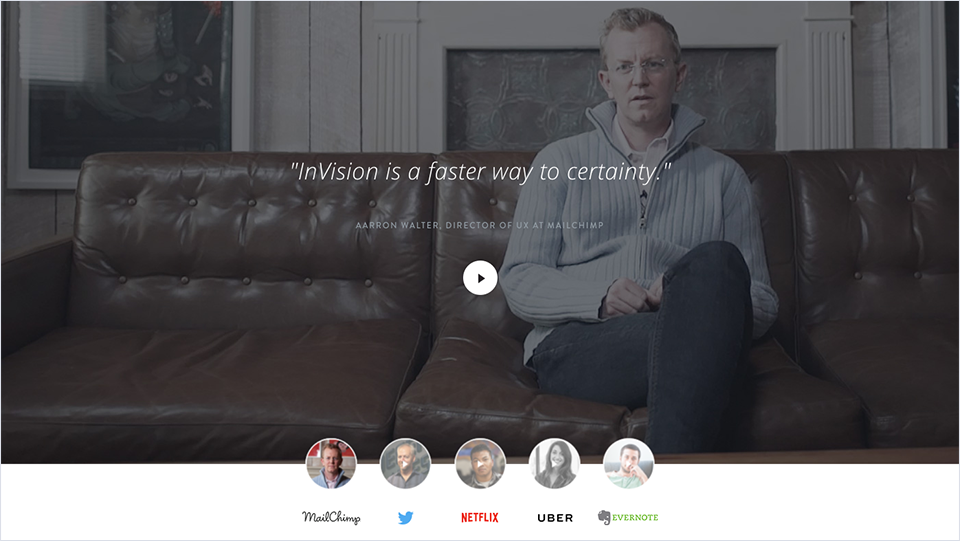 越來越多的公司已經(jīng)不滿足于靜態(tài)講故事,例如Invision,他們開始使用更專業(yè)、更有說服力的采訪短片來作為客戶成功案例: