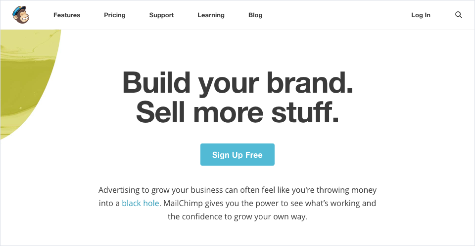 MailChimp的首屏標(biāo)題簡短有力: