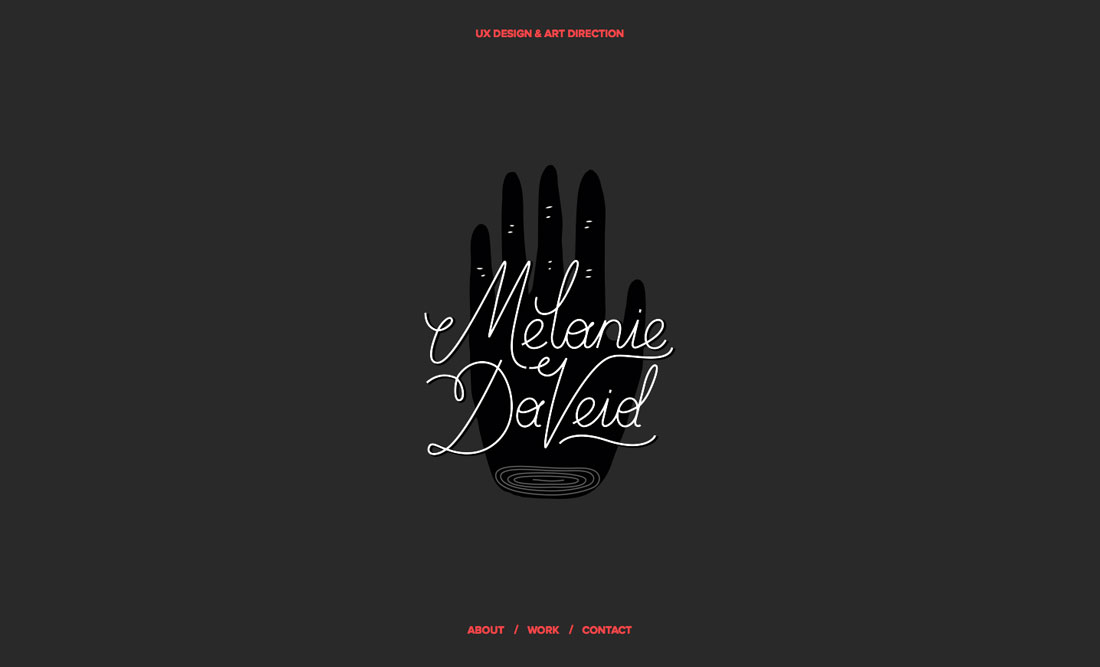 Melanie DaVeid 做了一個(gè)優(yōu)秀的示范,通過一個(gè)簡(jiǎn)單的視覺呈現(xiàn),使你對(duì)它的其他工作感興趣。通過動(dòng)畫,顏色和特殊的文字組合,在首屏就為用戶創(chuàng)造了獨(dú)特的感覺。