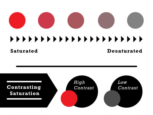 顏色的濃度(英: The Intensity of A Color),也被稱為色彩飽和度(英: Saturation)。純粹明亮的顏色,他的飽和度狀態(tài)就是100%;越是接近灰色,他的飽和度也就越低。明亮的色調(diào)和黑色一起使用的話,就能產(chǎn)生特別的引人注意的效果。在設(shè)計(jì)中可以作為一個(gè)特別的組成部分,為了強(qiáng)調(diào)出重要的部分,一定要謹(jǐn)慎的使用。