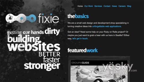 哇噻,我真的非常喜歡這個(gè)網(wǎng)站上使用的排版和顏色。注意看他們標(biāo)語(yǔ)的大小和筆畫(huà)。頁(yè)面上灑水效果和少量藍(lán)色的使用,都讓我非常欣賞。