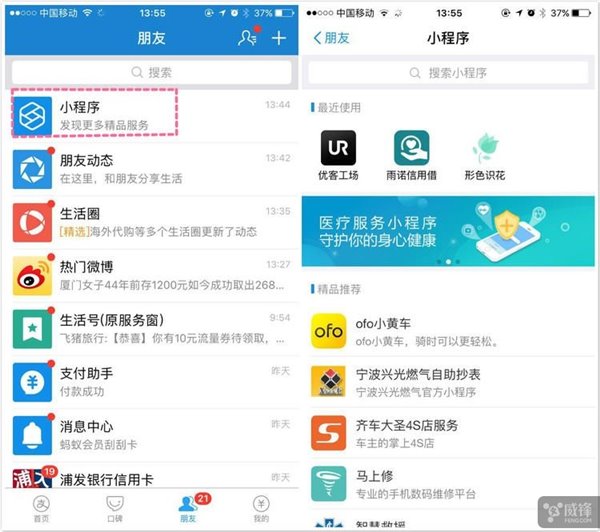 用戶打開支付寶的小程序有三種方式:線下掃碼、在支付寶應(yīng)用內(nèi)搜索以及通過他人分享。在支付寶的首頁,搜索“小程序”,你可以進(jìn)入一個(gè)小程序的聚合頁面,其實(shí)就是小程序商店,搜索小程序的名字,也能找到對應(yīng)的小程序。使用過任何一個(gè)小程序之后,進(jìn)入支付寶首頁的“朋友”一欄,就能找到小程序的聚合頁面入口。