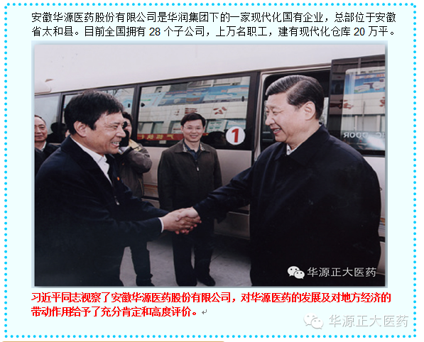 習(xí)近平同志視察安徽華源正大醫(yī)藥有限公司